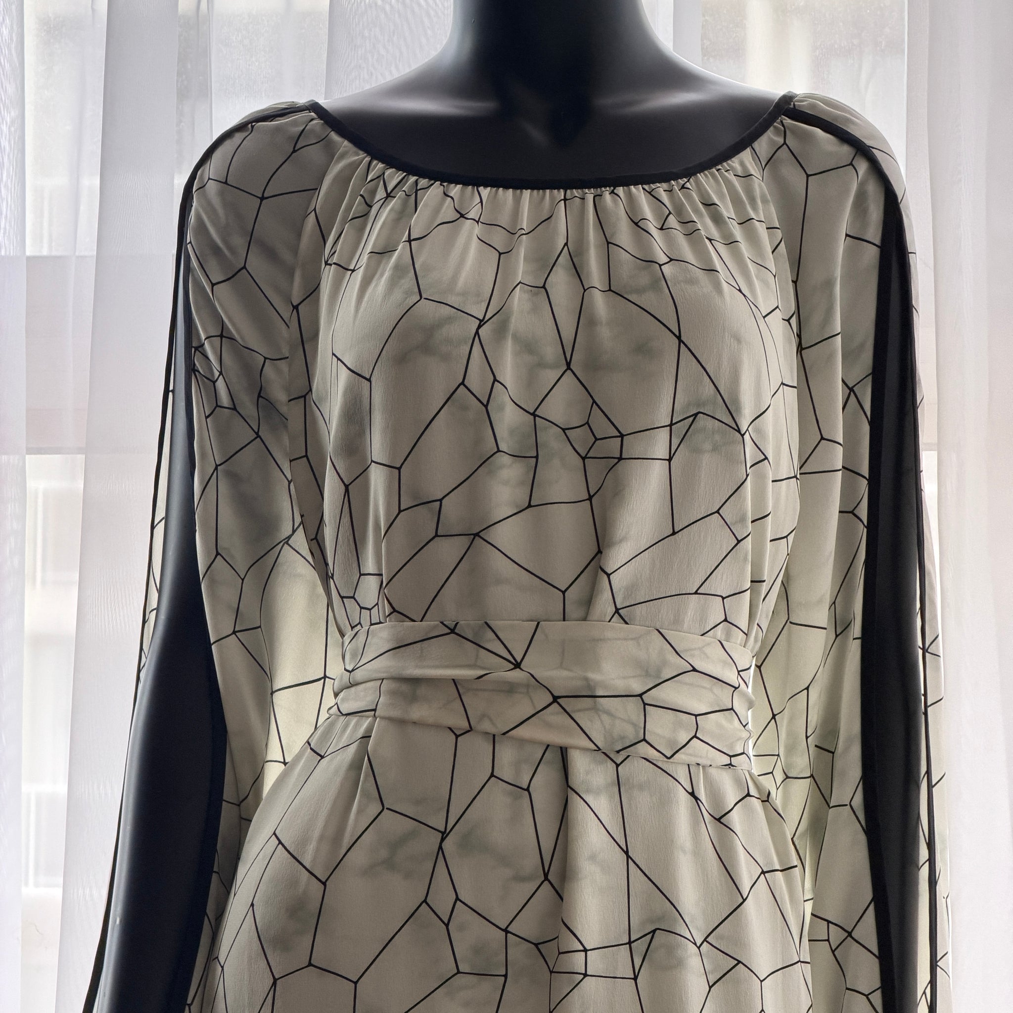 Cool marble/spider web style print and cut out sleeves gives it an elevated bohemian edge.