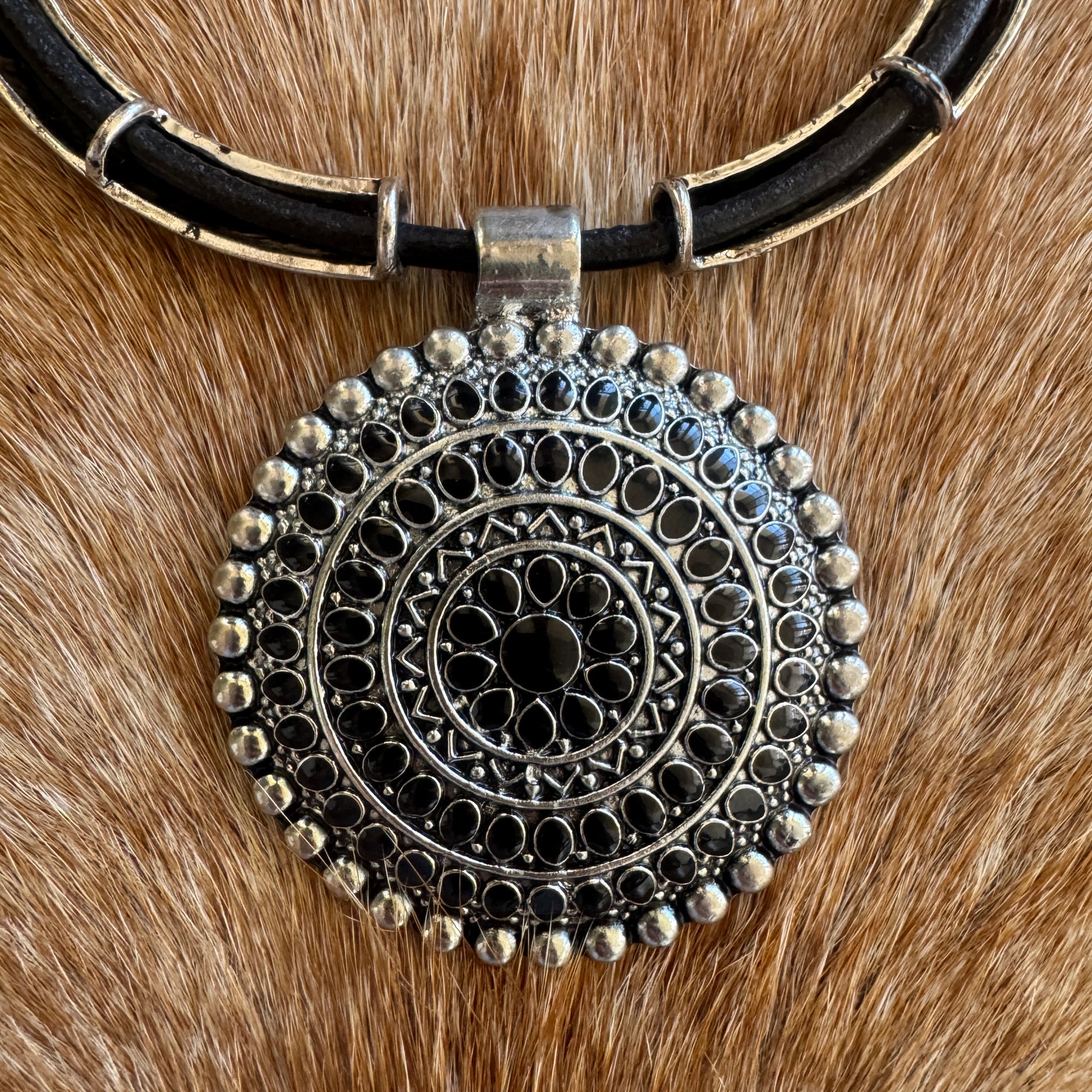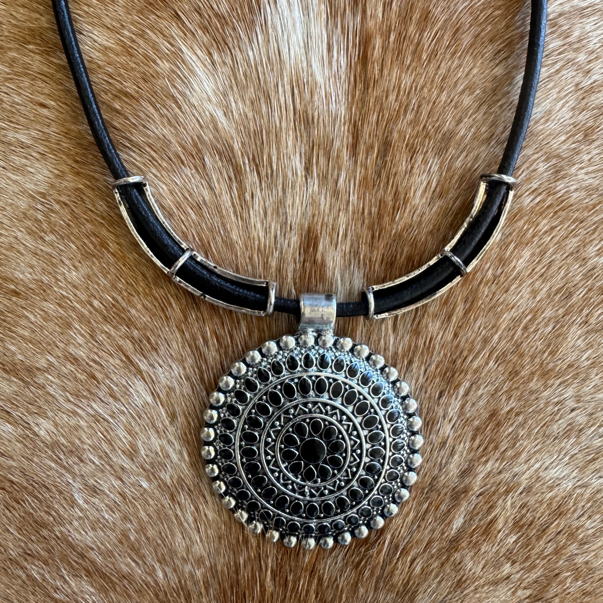 Set in leather and solid metal