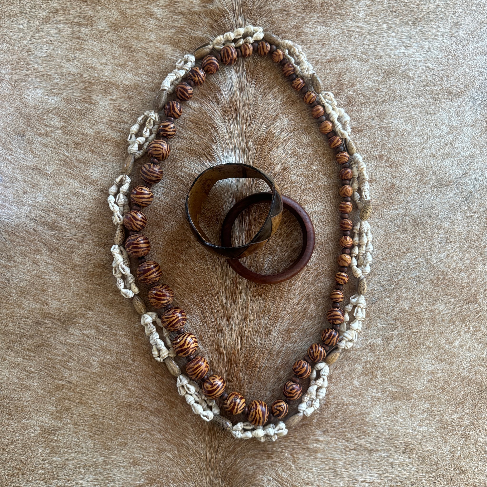 Shell, seeds, beads and wood this is a stunning hand crafted matching 4 piece set from mother natures materials