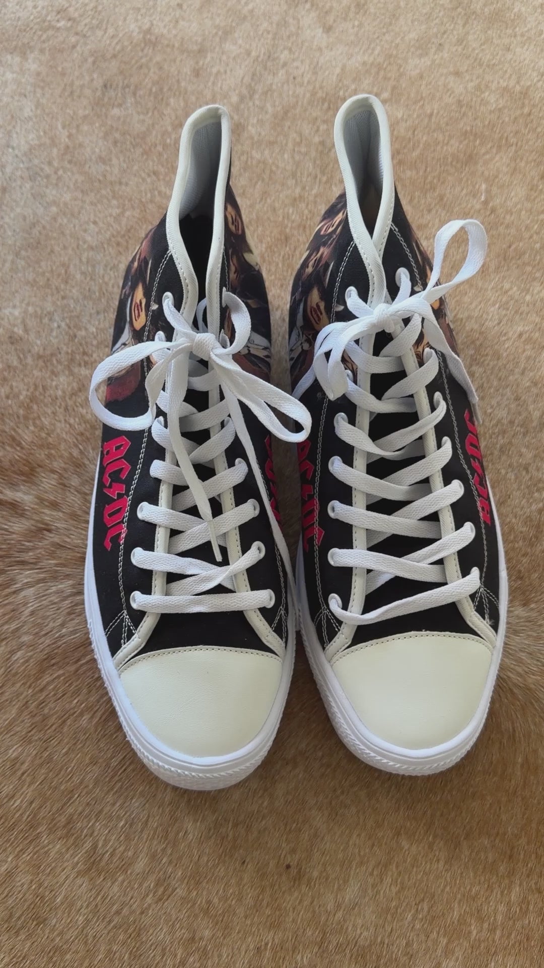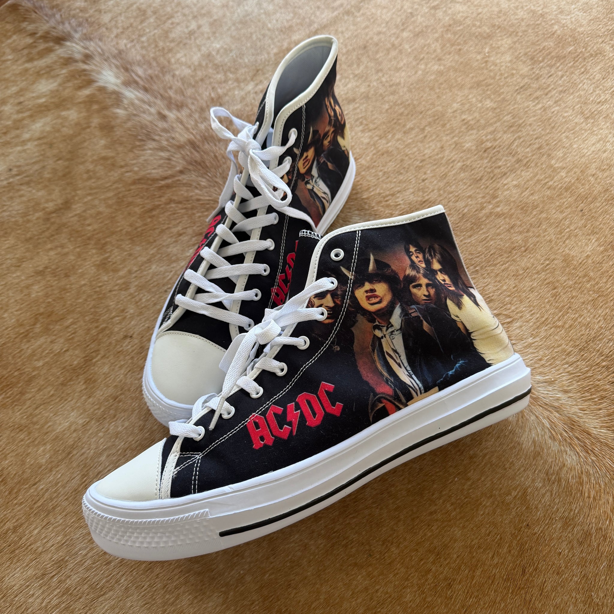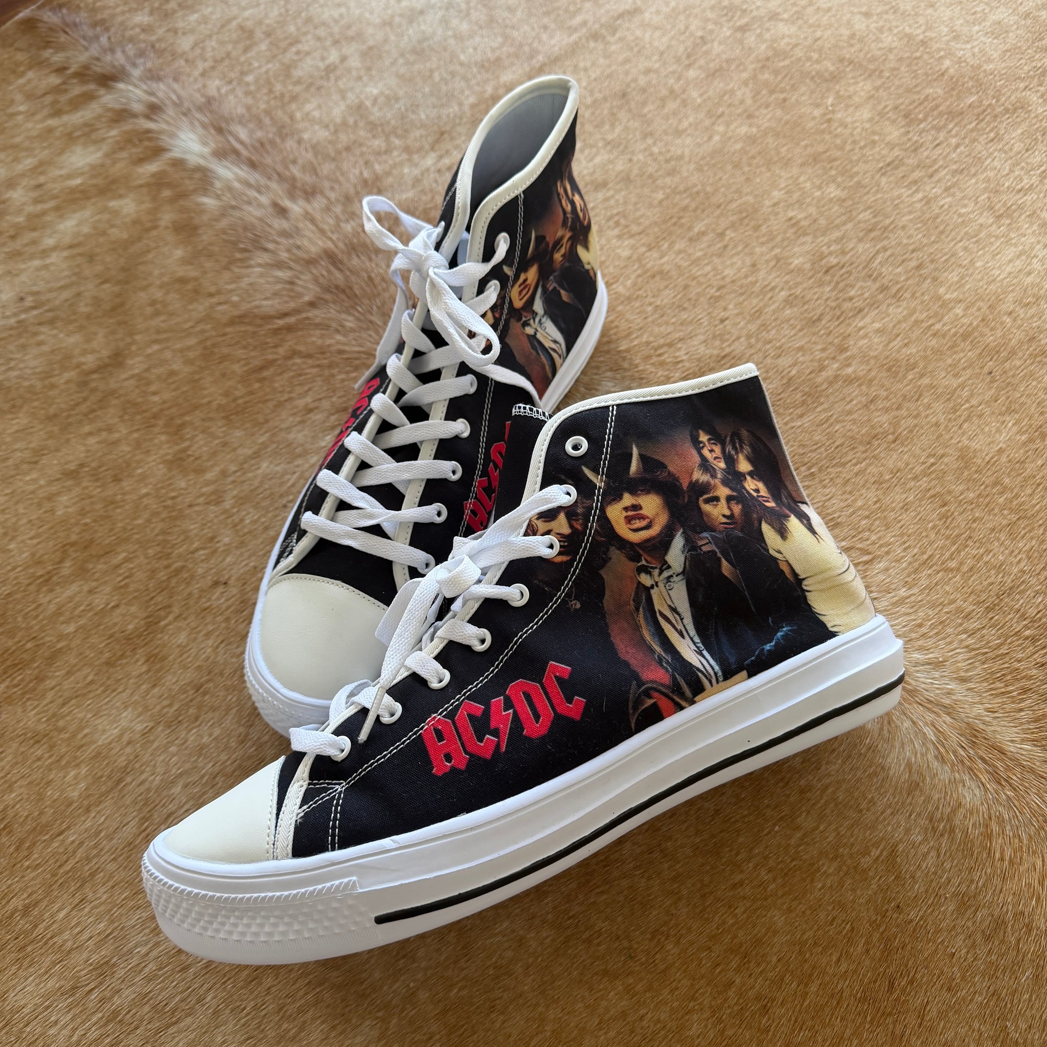 These rare, never been worn custom AC/DC high tops are such a cool one of a kind find