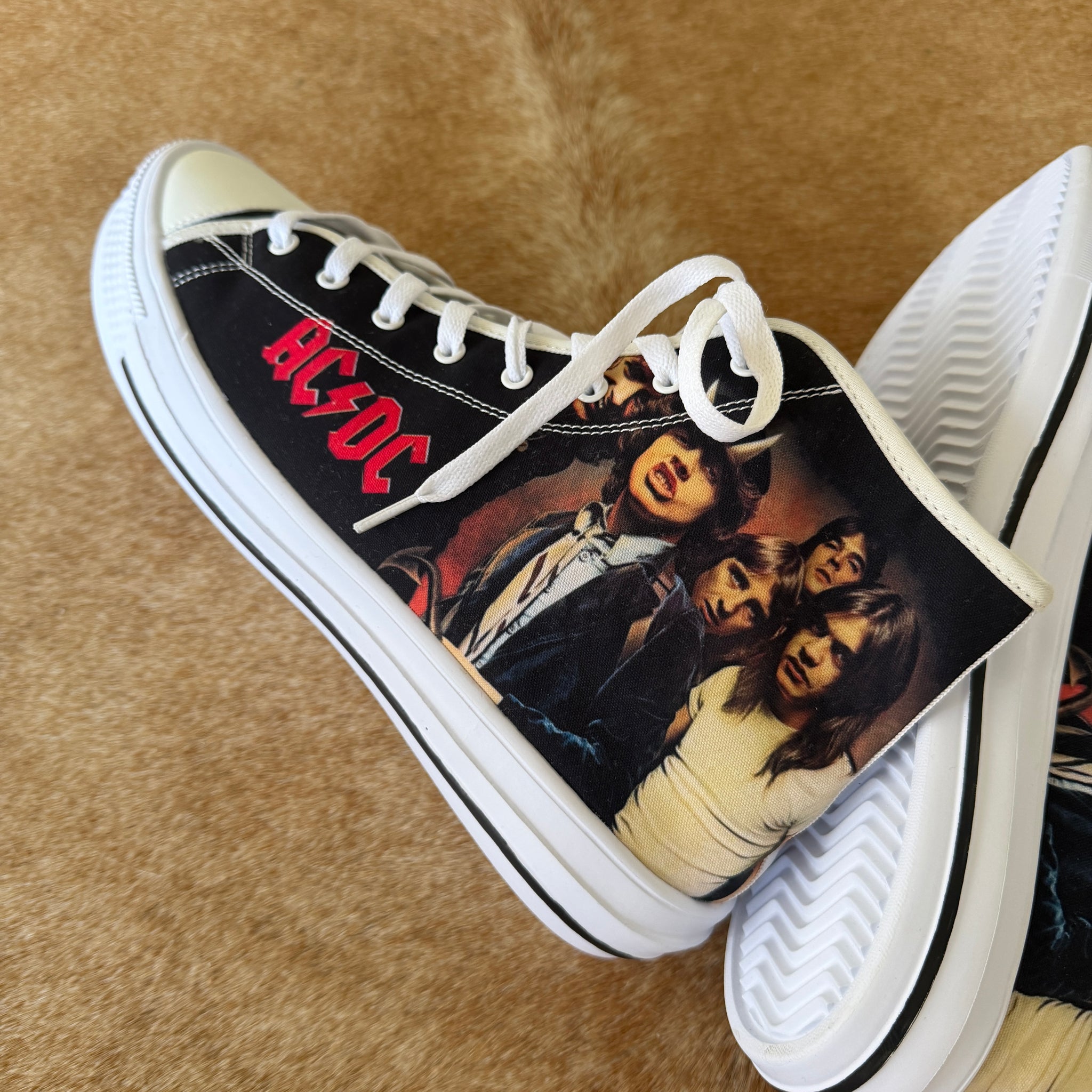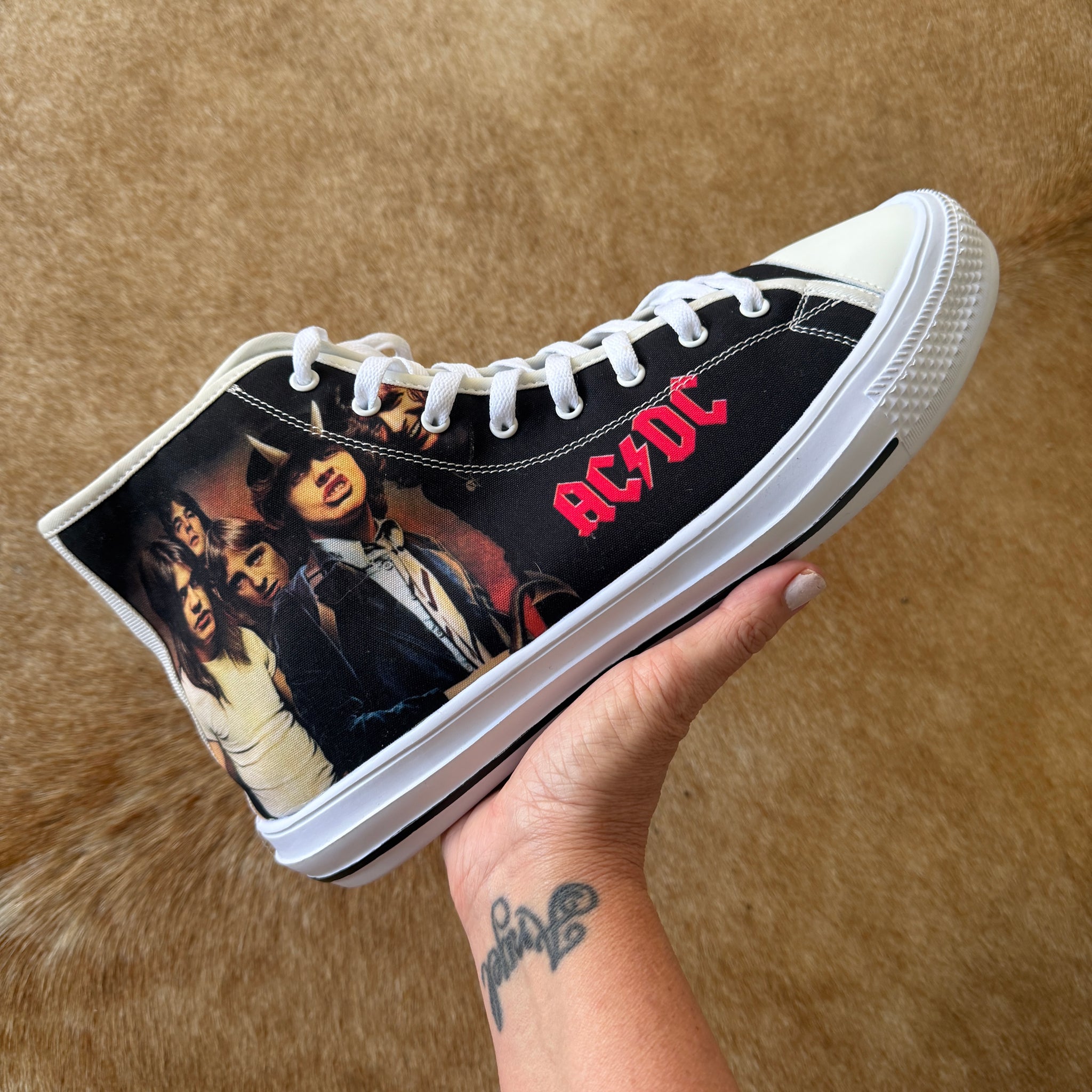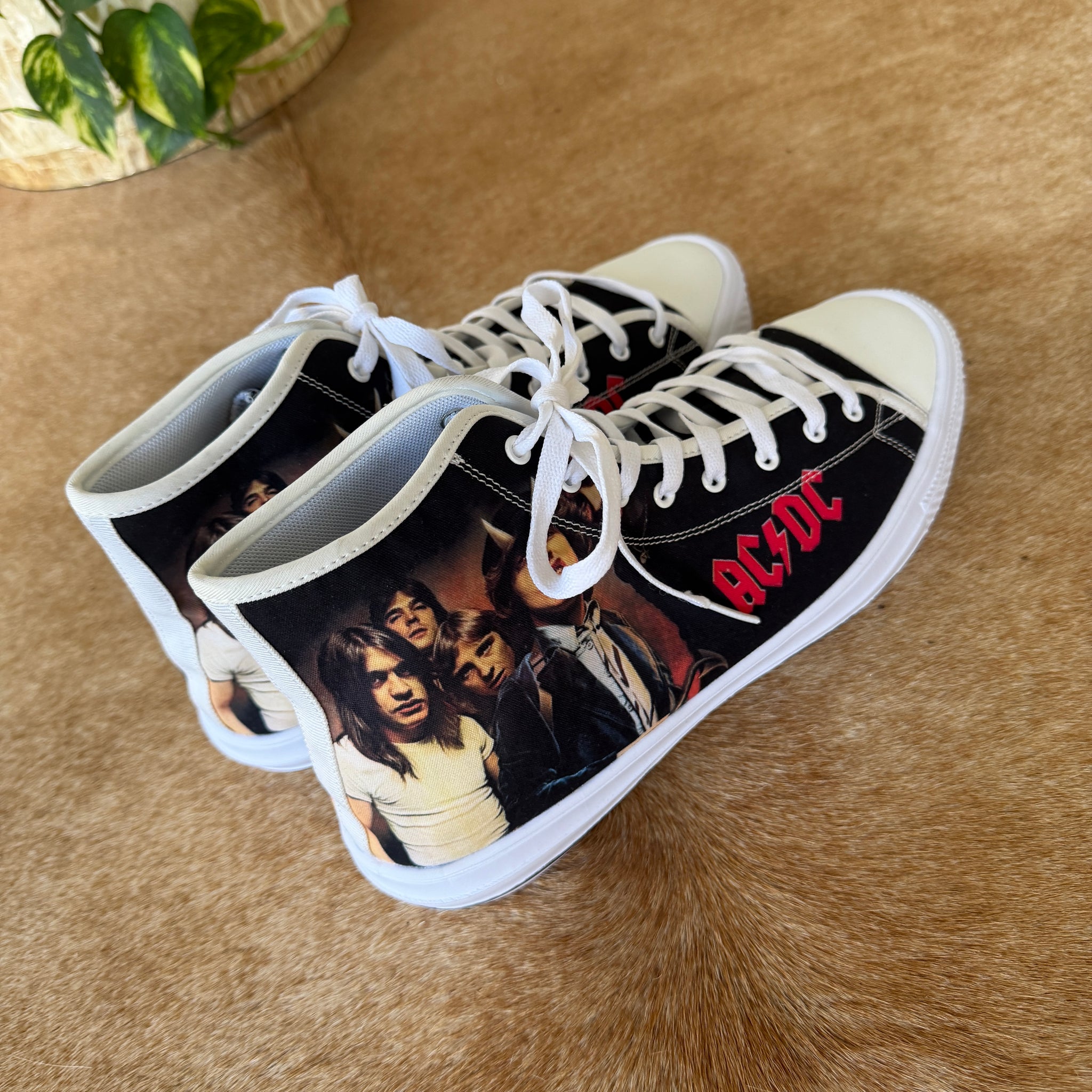 These rare, never been worn custom AC/DC high tops are such a cool one of a kind find