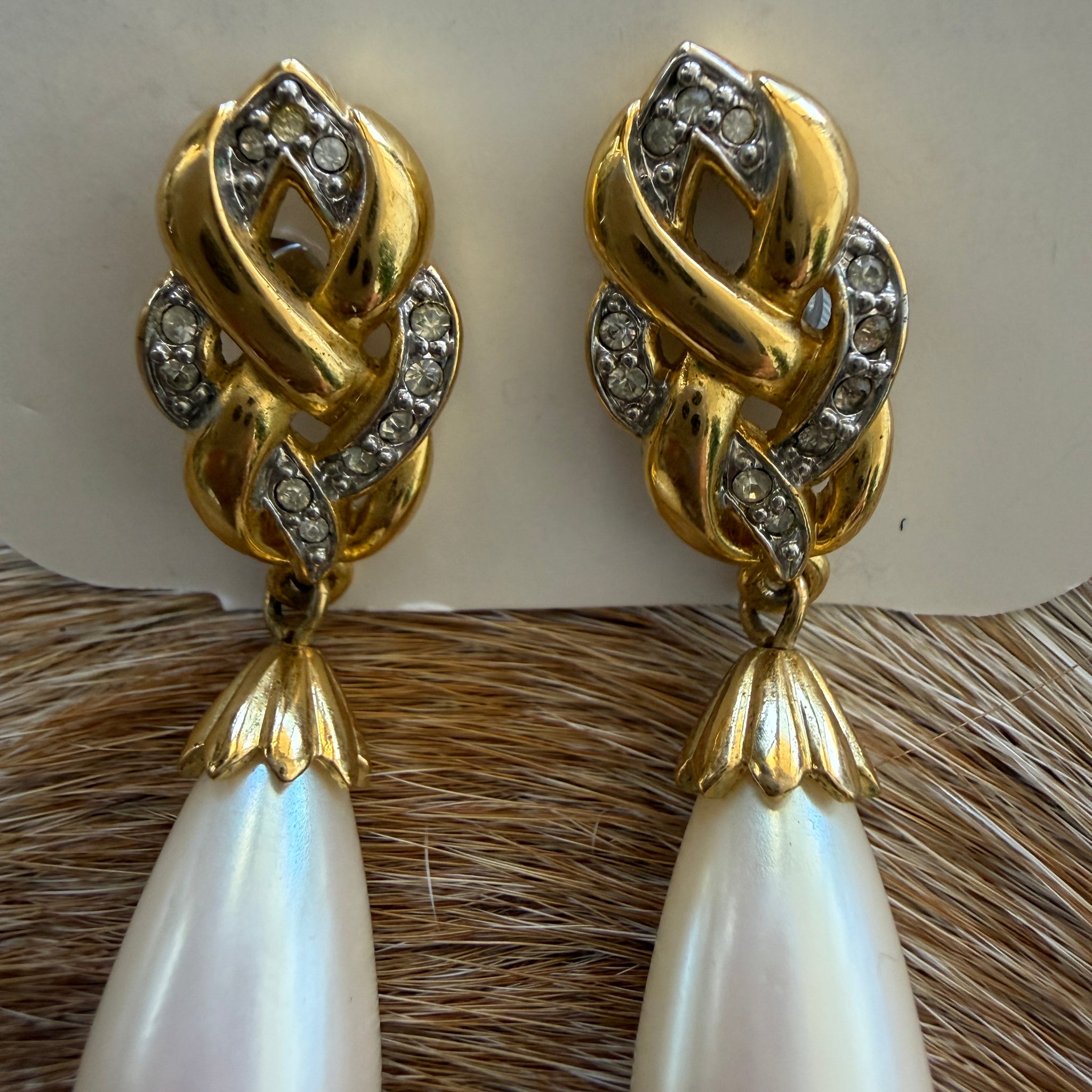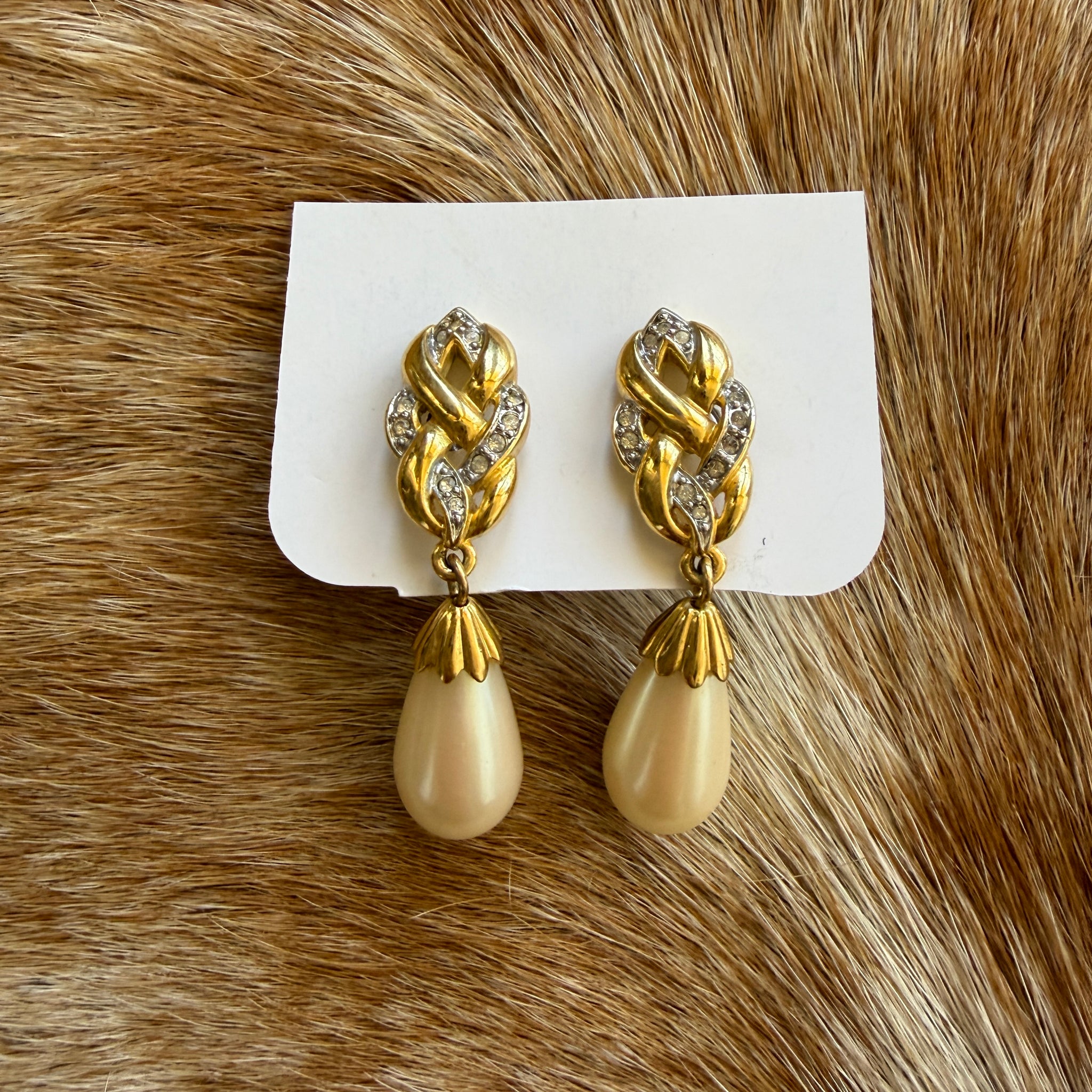 Gold tone and diamante infinity style symbol with delicate pearl drop