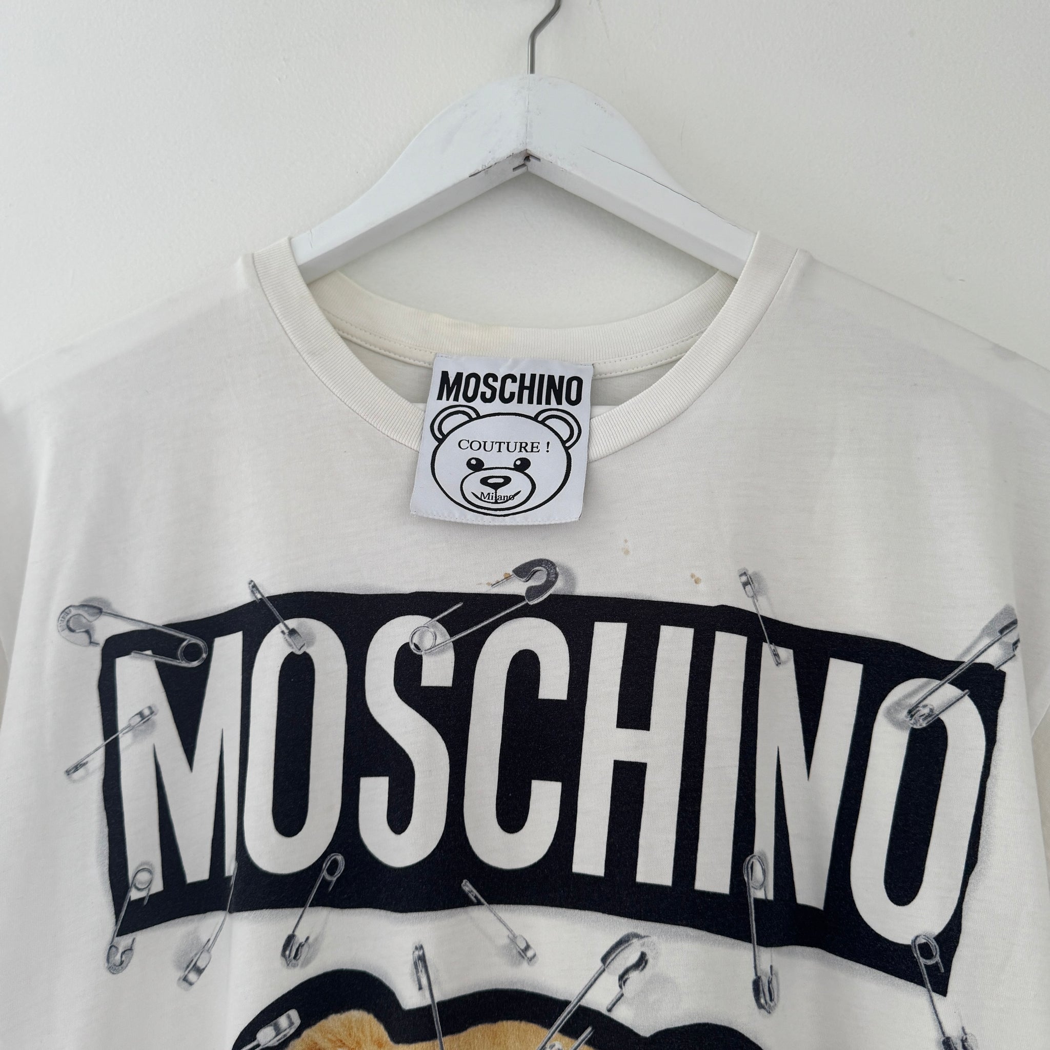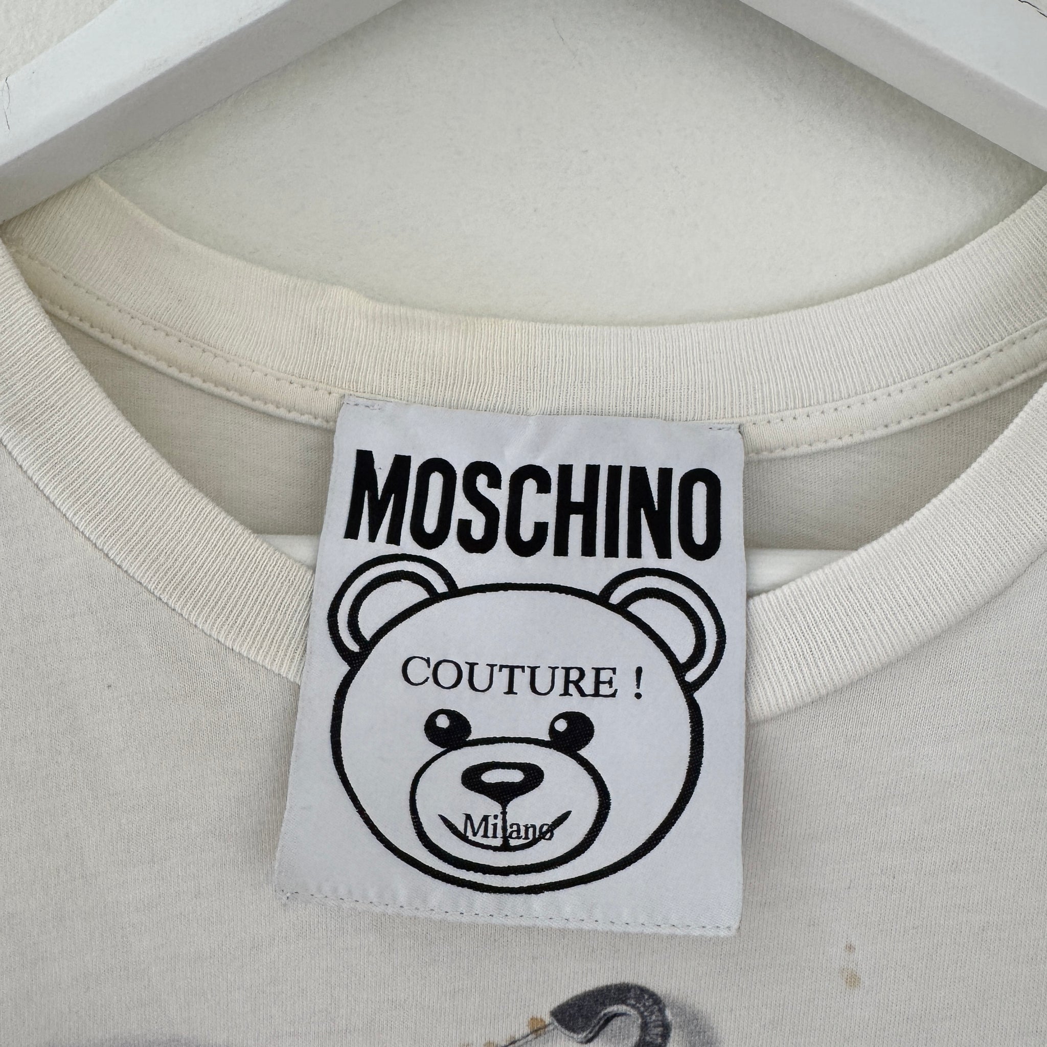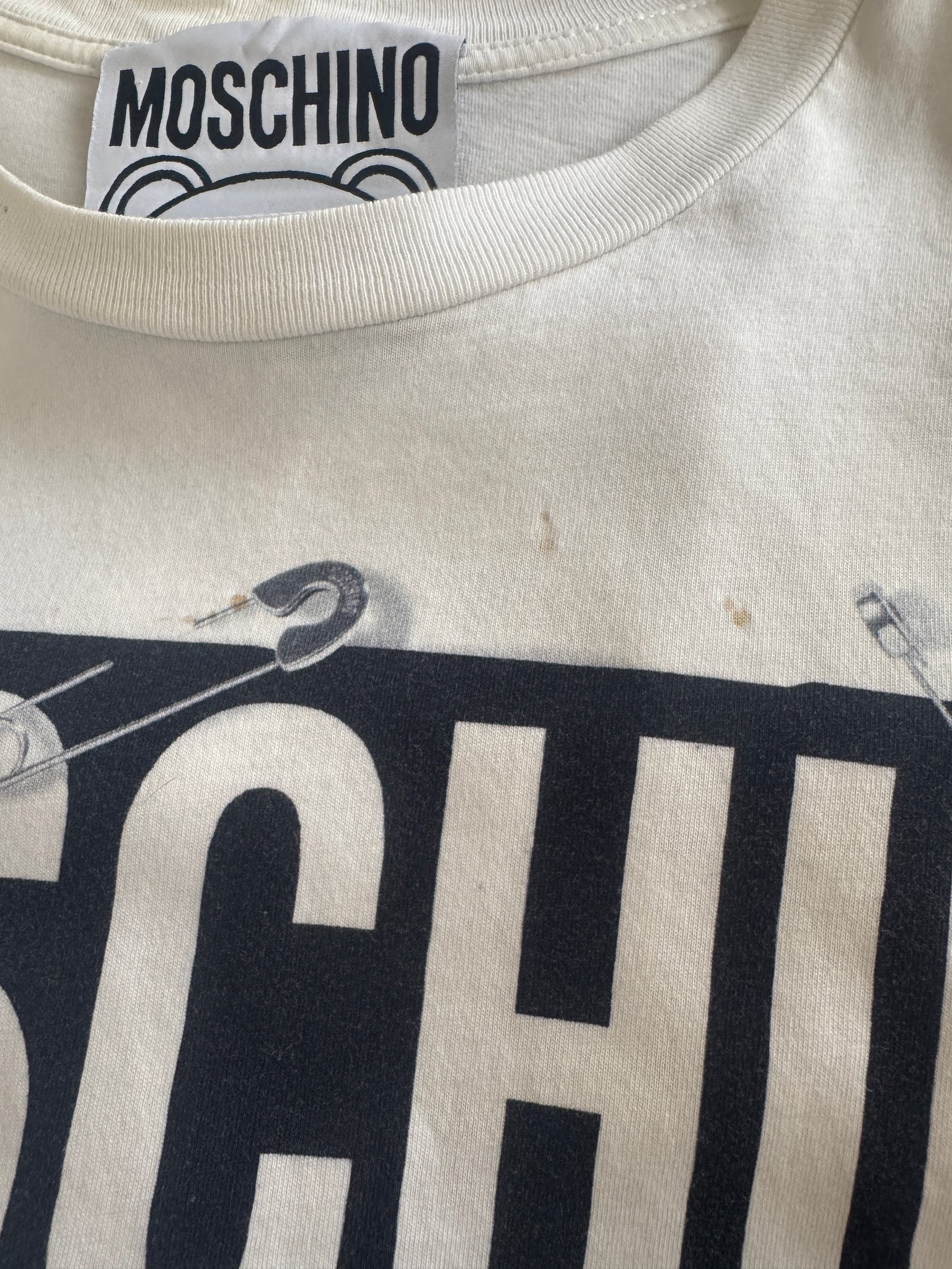 A rare find, this white preloved Moschino tee is a great collectors piece from the Jeremy Scott era
