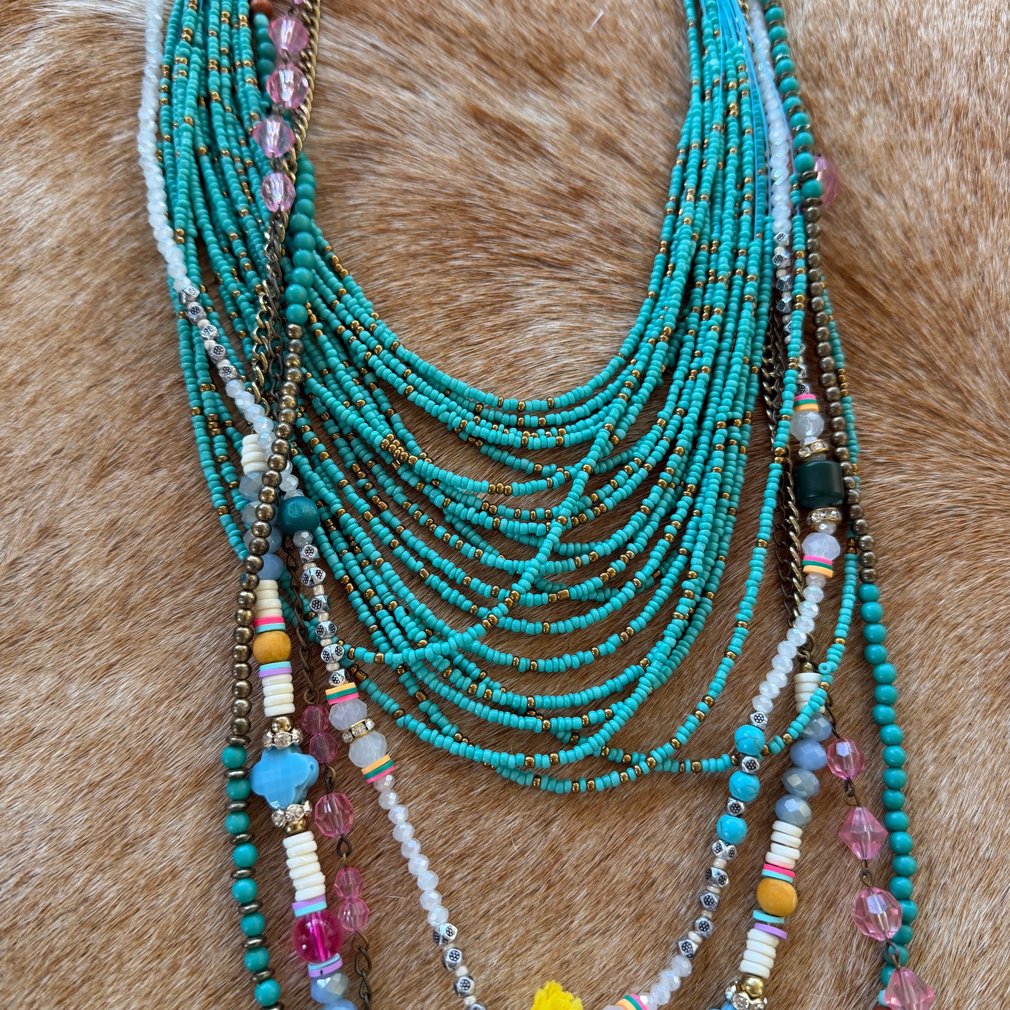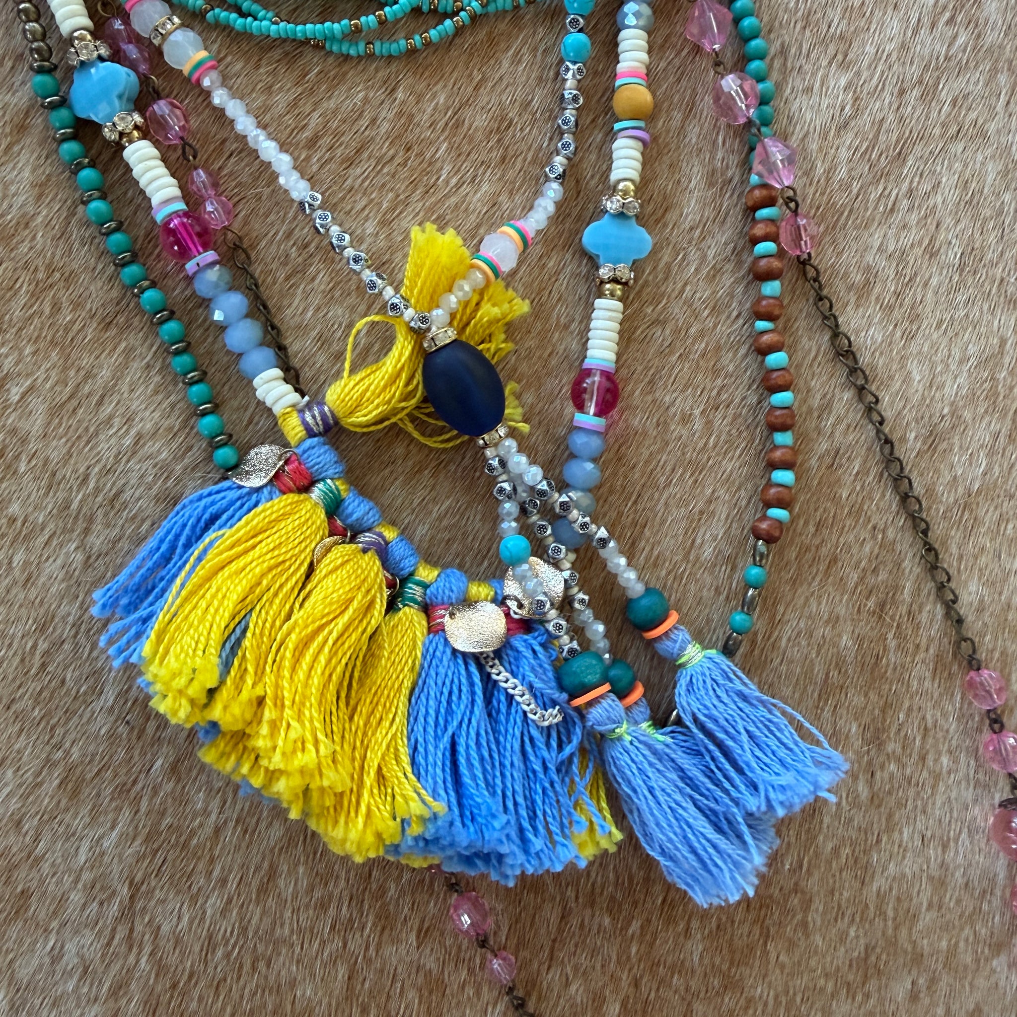 Stack includes 5 necklaces, some are wrapped around twice to make the layered look even more dynamic
