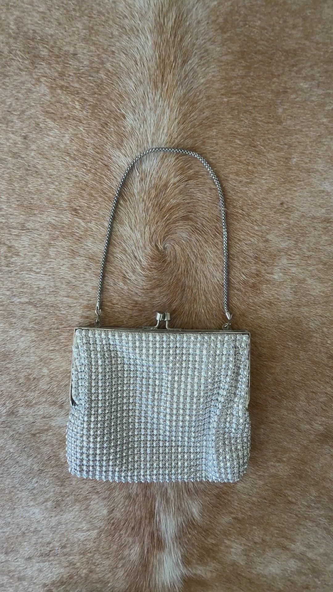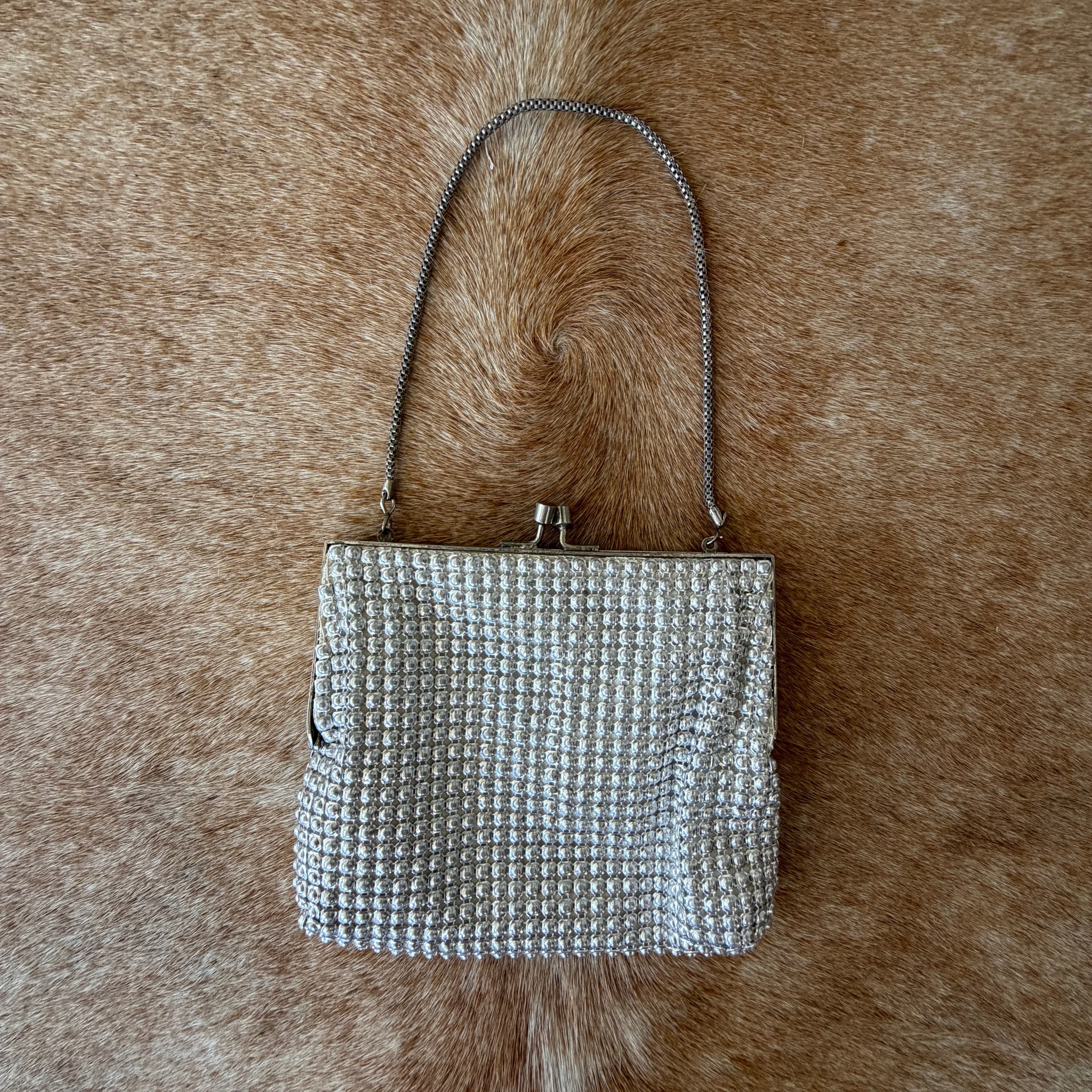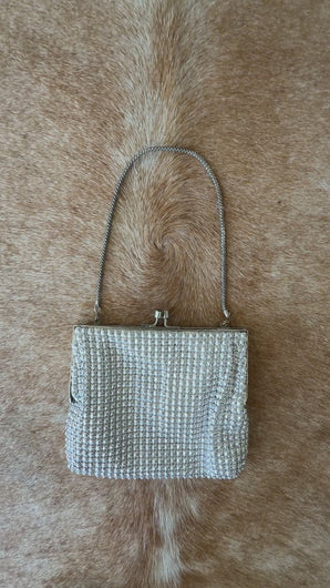 Gorgeous metallic silver bead like work with solid frame, silver clip clasp and satin/chiffon like lining