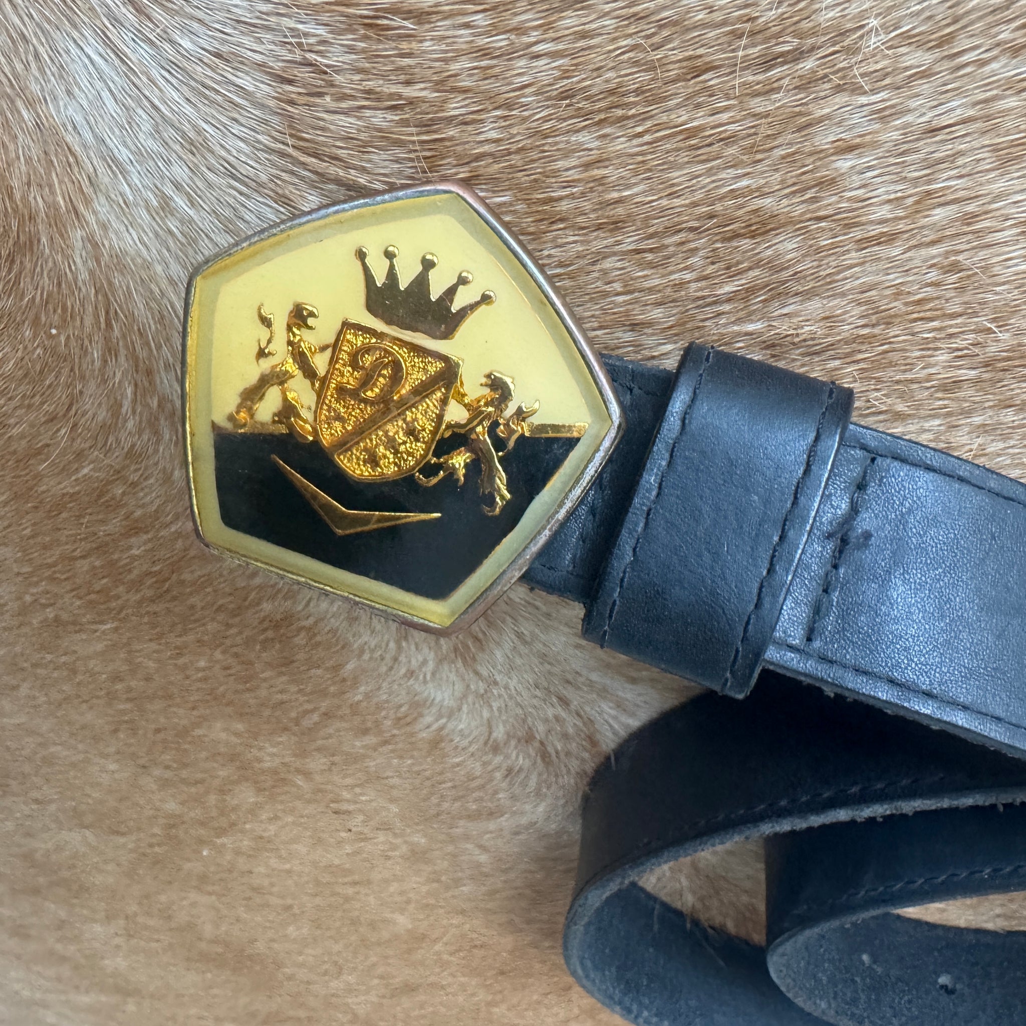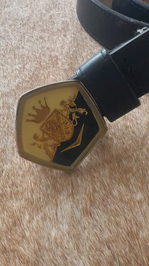 Fantastic statement buckle with crest/coat of arms style motif in solid metal