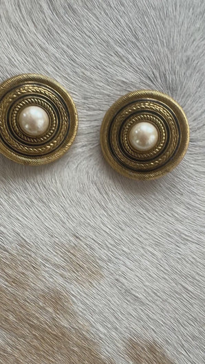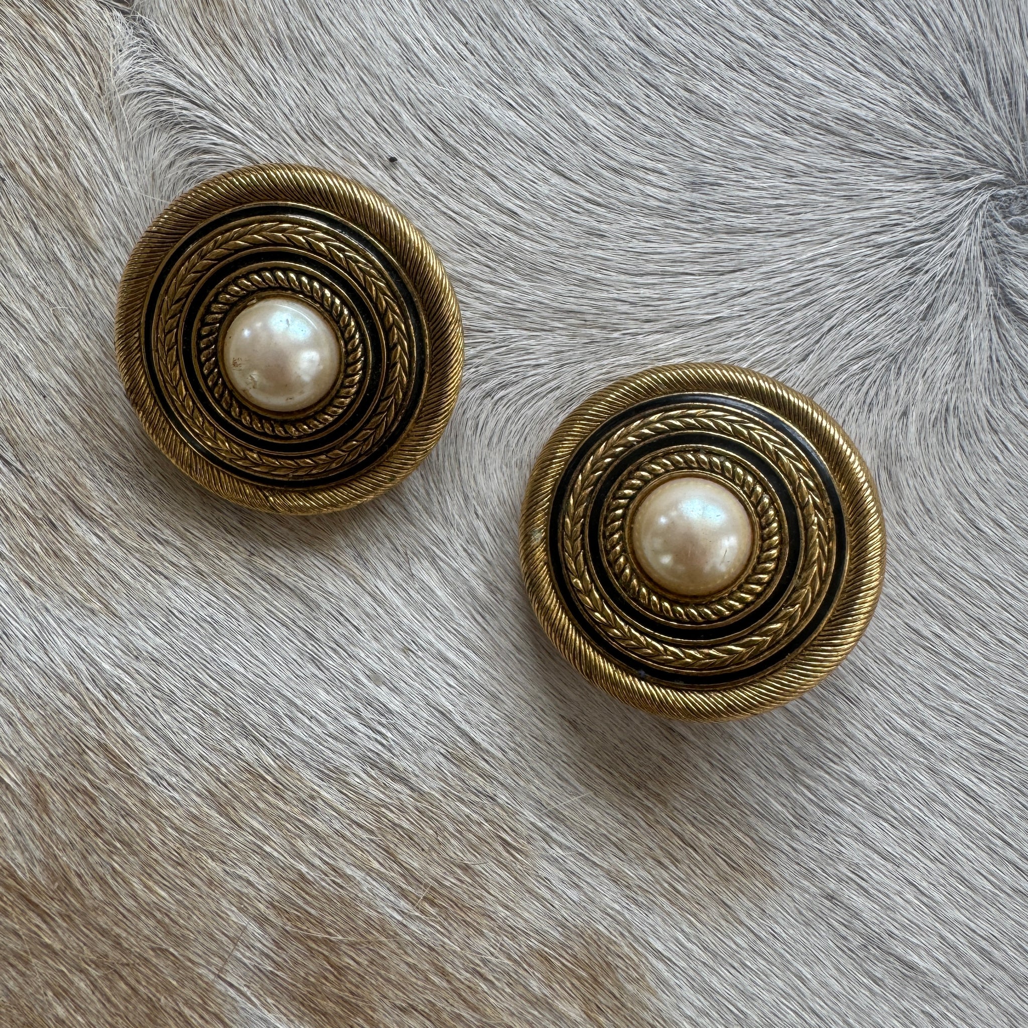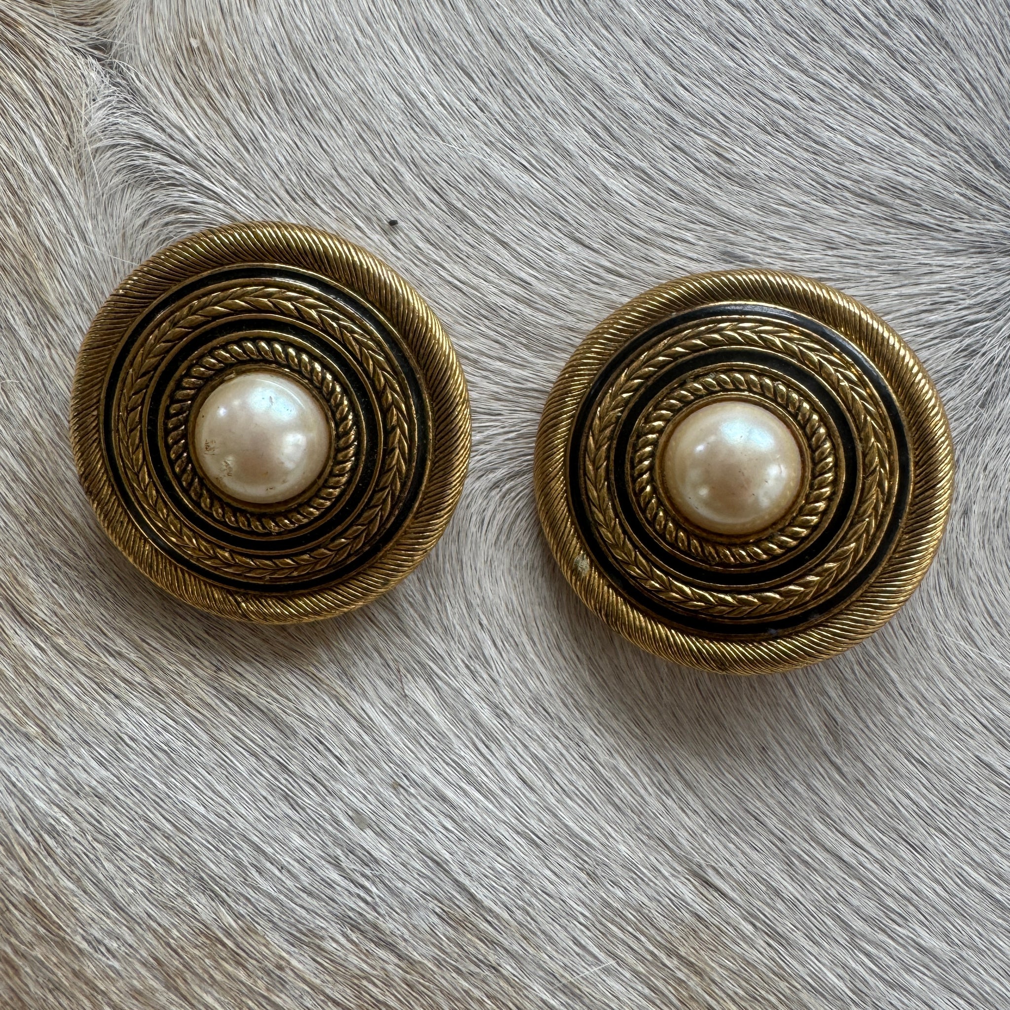 Beautiful bold clip on vintage earrings with gold and pearl detailing